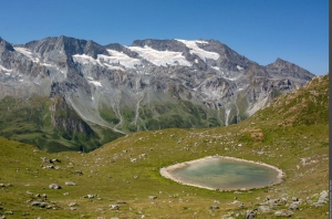 Le col de la Croix des Frêtes, à 264 7m, sépare les communes de Peisey-Nancroix, à l'est, et celle de Champagny-en-Vanoise, à l'ouest. C'est le seul point de vue du tour de la pointe de la Vallaisonnay qui permet de voir les 2 plus hauts sommets du massif de la Vanoise. Le mont Pourri, au nord-est (3779 m), et la Grande Casse, au sud-ouest (3855 m). Les 2 sommets ont été conquis à la même époque, en 1860 pour la Grande Casse et 1861 pour le mont Pourri, par le guide Michel Croz et ses compagnons. La voie normale de la Grande Casse par le glacier des Grands Couloirs, qui domine Pralognan, est invisible. D'ici, on ne voit que l'austère face nord et son glacier suspendu.