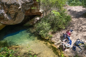 Après ces 2 jours d’efforts et de découvertes, nous voilà enfin arrivés à Saint-Guilhem-le-Désert, comblés par cette belle aventure en pleine nature. Niché au creux des montagnes et bordé par le Verdus, ce site dévoile peu à peu son architecture médiévale intacte et l’imposante abbaye de Gellone, fondée au VIIIe siècle par Guillaume d’Aquitaine et classée à l'UNESCO au titre des Chemins de Compostelle en France. L’atmosphère y est empreinte de sérénité, contrastant avec la rudesse du relief alentour, et offrant une arrivée hors du temps, où l’histoire et la nature se fondent en une harmonie parfaite.On ne peut résister au plaisir de partager le verre de l'amitié sur la place du village, à l'ombre de l'immense platane, bercé par le glouglou de la belle fontaine: un final en beauté!