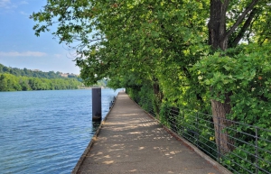 Suivre à gauche le quai Clémenceau. Traverser la route au premier passage protégé et continuer jusqu'au club d’aviron, à la hauteur de l’île Barbe.