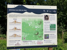 Depuis l’entrée de Vulcania, continuer sur la D559, direction Mazayes, sur 1,4km. Panneau de départ / parking à 50 m à droite.