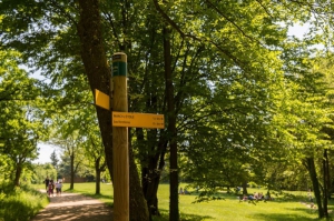 Balisage jaune du réseau : Entre les poteaux les itinéraires sont balisés (marquage par peinture ou autocollant) en jaune. Les sentiers d’interprétation (sentiers nature) peuvent avoir un balisage particulier complémentaire. Les chemins ruraux, un patrimoine à préserver. Les chemins ruraux ont été classés au Plan Départemental-Métropolitain des Itinéraires de Promenade et de Randonnée (PDMIPR). Ce classement les protège et leur évitera de disparaitre au fil du temps sous la nature ou d’être fermés par des clôtures. Il garantit à tous les amoureux de la nature un accès autorisé, sécurisé, et balisé. Mais attention, ces sentiers sont parfois privés : le respect de ces lieux est donc primordial.Cheminement : 46 % de petites routes goudronnées et 53 % de chemins non-goudronnés.