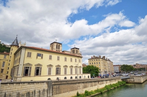 À droite, entrer dans le jardin du palais Saint-Pierre par le musée des Beaux-Arts. (- Lieu où ont été tournées des scènes des films Boulevard des Hirondelles de Josée Yanne (1992) et Vieille Canaille de Gérard Jourd’hui (1993) avec Michel Serrault, Anna Galiéna, Pierre Richard, Catherine Frot,) Revenir à l'étape 3 et continuer en face rue Constantine pour franchir la Saône sur le pont de la Feuillée et poursuivre rue Octavio-Mey.