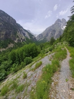 La première partie de la via se termine à l'ombre d'un tilleul, le tilleul à grandes feuilles. Il est présent également le long du cheminement de la via ferrata mais avec des spécimens plus petits. Cette espèce, voisine du tilleul commun qui est cultivé, est une espèce dite des « forêts de ravin » qui occupent des pentes fortes et souvent fraîches. Le torrent amène la fraîcheur et la pente est là !