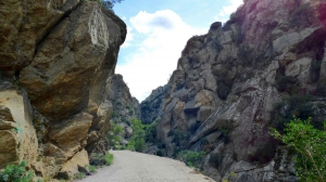 En bas des gorges, emprunter le balisage bleu pour traverser le parking et rejoindre le viaduc de la Voie Verte par un sentier caladé entre les chênes verts. Avant le viaduc, emprunter un chemin qui monte et qui rejoint la Voie Verte.