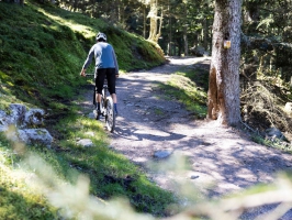 Itinéraire descendant alternant des passages faciles et petites difficultés techniques naviguant entre pistes forestières et chemins monotraces pour descendre dans la vallée.
