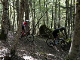 MODIFICATION TEMPORAIRE DU TRACÉ EN RAISON DE TRAVAUX FORESTIERS, LE PARCOURS EST UN PEU PLUS DIFFICILE (trace gpx, carte et profil mis à jour).Itinéraire gravitaire d'un niveau modéré. Attention, certains tronçons sont partagés avec des piétons. Maitrisez votre vitesse !