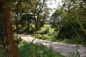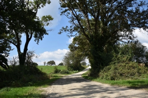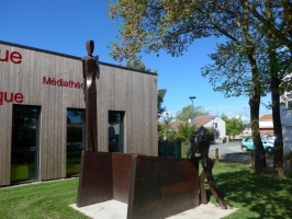 Depuis le chemin de La Normandelière à la Croix du Vigneau, quittez la piste cyclable en direction du centre-bourg par le chemin de l'épine.La fresque colorée de Mika se trouve sous le préau entre la bibliothèque et la mairie.