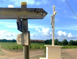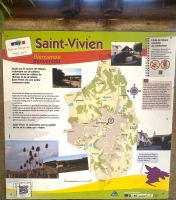 Venez découvrir la boucle de randonnée de St Vivien; depuis le panneau d'appel situé sur la place du Monument aux Morts, prendre en direction du cimetière puis juste après le court de tennis, partir à droite sur le large chemin blanc. Arrivé à la route, partir à droite.