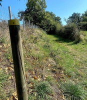 Depuis le panneau d'appel sur Le parking de la Mairie. Sortir du parking, monter à droite puis à 50m prendre à gauche. Après le four à pain, tourner à droite l'angle de la maison.