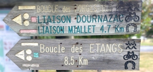 Depuis le panneau d'appel situé sur le parking face à la station essence. suivre à droite la RN21 direction «Boucle des Etangs 8.5 km». Passer devant l'église puis au bas de la descente. juste avant le pont sur la Dronne. partir à gauche vers«Monchapeix» - «Pauliac» - «Les Bordes».