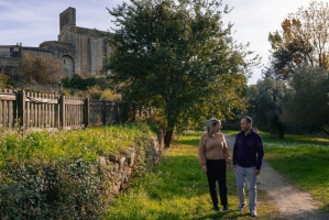 Un roc au milieu des vignes ! Bye bye Poussan, bonjour Montbazin construit sur un promontoire au milieu des vignes et en bordure des collines de la Moure ! L'arrivée dans l'antique Forum Domitii par la route de Villeveyrac offre au regard une belle vue sur l'ancien castel crénelé et la seule porte subsistant de la troisième enceinte fortifiée... Je vous conseille de vous engager à pied par la vieille porte (rue du Portail), pour arriver, au débouché de la rue du Four, devant l'ancien château féodal du village (XIIème siècle). Ici, prenez le temps d'admirer ses créneaux et le dernier vestige de la deuxième enceinte (XIIIème siècle), une porte haute, et son chemin d'accès en pierres lissées par les passages du temps... Poursuivez votre découverte sous l'œil des gargouilles des remparts jusqu'à la chapelle Saint-Pierre du XIIème siècle intégrée dans le dispositif défensif du castrum. Au-delà de la vue imprenable qu'elle offre sur les alentours, elle abrite des fresques romanes d'inspiration byzantine très rares dans la région ! Son passage voûté sous le chevet faisant office de porte de ville est aussi très singulier. Après être passé sous un porche roman, profitez du point de vue et du mâchicoulis de la porte. Enfin, redescendez par la "Davalade" jusqu'aux jardins méditerranéens sous la chapelle pour admirer l'ensemble de cette circulade aux rues sinueuses. Flânez, regardez, lisez : Dans le village, il existe un circuit de visite patrimonial complet jalonné de 17 panneaux sur lesquels des textes et un QR-Code vous permettent d'accéder au contenu numérique enrichi sur "Mémoire de Montbazin". Il vous suffit de suivre le balisage bleu reprenant la signalétique de la Fédération Française de Randonnée, au départ du parking Cami de la trappe. Au gré du vent : Construit au XVème siècle pour moudre le blé produit localement, le moulin de Juffet appartenait autrefois aux évêques de Maguelone. Fraîchement rénové, le moulin a, depuis, retrouvé ses ailes et fonctionne à nouveau. N'hésitez pas à pousser sa porte pour vous enivrer de l'odeur de la farine moulue sous la pierre... Et, si vous êtes disponible, rendez-vous à la Fête du Moulin et du Pain en mai pour (re)découvrir les savoir-faire meuniers et les paysages agraires méditerranéens dans le cadre bucolique et culturel du moulin. Idée rando : Amoureux de la nature, un parcours de randonnée au milieu de la garrigue vous emmène au-dessus de la bergerie des Agas, avec un point de vue original sur les éoliennes dressées sur les collines de la Moure, mais aussi sur Sète et la lagune de Thau. 4h - 13km - balisage jaune au départ du parking Cami de la trappe à Montbazin.