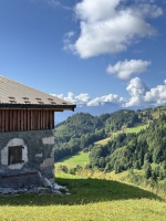 Poursuivre par les chalets d'alpages du Crêt et Sur le Creux. Depuis la clairière une jolie vue s'offre à vous sur les montagnes de la vallée du Giffre et la pointe du sommet du Mont-Blanc.