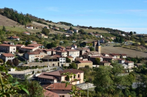 Monter la D 91 sur 50 m, les escaliers à droite et la rue du Puits. En haut, prendre la rue à gauche sur 200 m. Continuer à droite route de Montrottier. Obliquer à droite en épingle rue des Brosses, à gauche rue de la Croix-Rousse et encore à gauche. Poursuivre par le chemin. À la croix du Fraissonnet, tourner à droite. À la croisée, prendre le chemin à gauche.