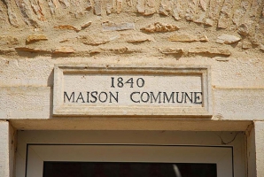 Mairie-école au linteau évocateur composé par le maçon-tailleur de pierres Claude Collombel de Cussey-les-Forges, qui a reconstruite la ruine achetée en 1839 par la municipalité pour en faire la maison commune. Elle est composée de deux parties presque symétriques, abritant autrefois au rez-de-chaussée à gauche la classe unique de l’école et le logement de l’instituteur à droite de la porte d’entré, ainsi que la mairie à l’étage. Remarquer à l’extérieur l’« oeil de boeuf » en façade, et sur le pignon de gauche, les vestiges de latrines médiévales en débord (provenant de l’ancienne maison-forte), installées en 1883 quand la cour de l’école a été réduite et les latrines primitives détruites à l’occasion de l’élargissement de la voirie. A l’extérieur, bordant la ruelle à droite, on observera un appentis encore couvert de laves.