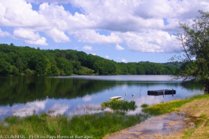 Au départ de Bujaleuf, la seconde étape du GR® de Pays Monts et Barrages en Limousin vous mène à jusqu’à Saint-Julien-le-Petit après 17 km de marche le long de la vallée de la Maulde.A partir de la place de l'église, prendre la route des Varaches en direction du cimetière puis après ce dernier, prendre le sentier à gauche qui descend vers la plage. Longer le lac de Sainte-Hélène, traverser le pont et remonter la route de Bujaleuf jusqu’à la voie à gauche vers le lieu dit « Bospertus ».A la sortie de Bospertus, suivre à droite le chemin forestier vers Cheissoux et Saint-Julien-le-Petit.Traverser la route, prendre en face direction « Rouvet Bas »puis à droite vers le village de « Rouvet Haut ».Au centre du village emprunter entre les maisons un chemin  de terre à gauche direction circuit de la chapelle.Traverser la route et prendre le chemin en face direction La Villetelle : point de vue sur la vallée de la Maulde et Bujaleuf sur la droite.À la Villetelle, emprunter à gauche en montant le chemin empierré de « l’ancienne croix ». À la route prendre à droite direction CheissouxÀ l’entrée de Cheissoux, à l'intersection avec la RD13, vous engager dans le chemin en face puis après quelques pas prendre la direction de l’église par la route de « la scierie ».Attardez vous devant l’église , sa fontaine et sa croix remarquable, puis prendre le chemin qui contourne l’édifice : circuit de la chapelle, au poteau signalétique « champs des Cars », prendre le chemin à droite vers le moulin de Cheissoux.Arrivé sur la RD13 au niveau du Moulin de Cheissoux, prendre la route à gauche en direction de Peyrat.Soyez prudent, la circulation peut être importante. Traversez le ruisseau puis rester sur le bas côté droit de la route pendant 200m pour trouver un sentier montant dans les bois en direction de Chatreix.À Chatreix , prendre la route à gauche et le « circuit de Saint Julien », puis s'engager à droite et suivre la route goudronnée puis empierrée jusqu'à Barbaroux.Traverser le village et à la dernière maison prendre la piste à droite .Au croisement de quatre pistes, prendre à droite l’allée empierrée vers « la planque des maquis ».Quitter la piste , prendre  à gauche le chemin vers le Verdier Haut.À la route, vous diriger à droite vers Saint Julien le Petit.Avant le lieu dit « Les Chamboux », le chemin à droite vous mène à Peyrat-le-Château ou continuez tout droit sur 550m vers le centre de Saint-Julien-le-Petit.