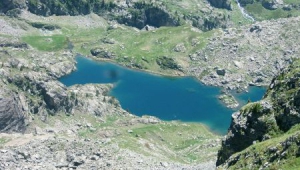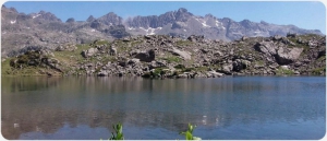 du Grand Colon (2596 m)marqué par des Cairns. Belle vue sur le Lac Merlat en contrebas.