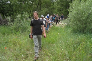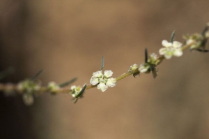 Les terrasses alluviales bordant le Calavon sont colonisées par des plantes herbacées dont la rarissime et protégée Bassie à fleurs laineuses. Cette espèce steppique des zones sableuses semble se maintenir en France uniquement dans le Vaucluse, et plus particulièrement sur le Calavon, entre Apt et Robion (15 sites connus sur les 19 de l’hexagone). Ici, en contre bas de ce chemin, un programme de confortement et de suivi de ses populations est mis en oeuvre sur des terrains du Parc du Luberon.