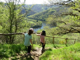 Au pied du château, les coteaux de Valon offrent une balade instructive avec des spots d'observation sur les Gorges de la Truyère, des manipulations pour les enfants, et des aménagements immersifs.
