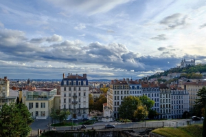 Juste avant la basilique, parcourir à gauche l’esplanade de Fourvière [dotée, quand la météo le permet, d’une vue sur la ville de Lyon, les monts du Jura, le Bugey, ainsi que la Chartreuse, l’Oisans et le mont Blanc]. Traverser le parvis de la basilique et descendre par la montée du Cardinal-Decourtray. Tourner à gauche rue Cleberg et, en bordure de la place de l’Antiquaille, dévaler les escaliers en face jusqu’à l’esplanade Saint-Pothin. La traverser à gauche, descendre les marches et couper la rue Pierre-Marion pour accéder au belvédère du Cardinal-Henri-de-Lubac [enceinte de l’ancien hôpital ; panorama sur la presqu’île et tout l’est lyonnais, avec un demi-cercle de vue allant de la Croix-Rousse au confluent].