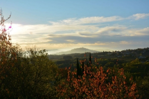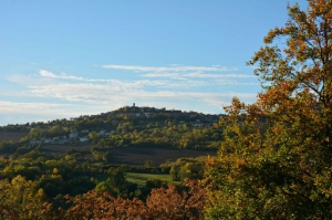 - Vue sur la vallée de l’Auzon et les villages de la Roche-Blanche, du Crest, de Chanonat, dominés par le plateau de la Serre.