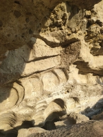 Historiquement la pierre de meules à moulins servait à la fabrication de farine se seigle, d'orge ou autre. Avec une meule d'une tonne on pouvait produire plusieurs centaines de kilos de farine chaque jour. Il faut rappeler que nos ancêtres mangeaient plus d'un kilo de pain par jour !Autrefois une meule valait le prix d'une maison, les places étaient donc très convoitées. Si tailler une meule n'était pas donné à tout le monde, trouver où la tailler était chose plus difficile encore ! L'extraction d'une meule se passait ainsi : La meule était tracée à même la paroi puis un sillon était creusé tout autour. Dans les sillon, des coins en sapin étaient forcés et mouillés régulièrement. Le gonflement du bois détachait la meule en faisant éclater la pierre. Le site d'extraction de la pierre à meule du Mont Vouan fût un site d'extrême importance puisque ce fût l'un des plus important du Sud-Est de la France avec une production de plus de 200 000 meules pour 72 carrières.Au pied de la Meulière à Vachat s'étend de la marais de Pierre aux Morts ou ''Gouille aux Morts'' qui rappelle combien la taille des meules étaient difficile car les tailleurs prenaient souvent de gros risques. L'étang fût nommé ainsi suite à la chute de 2 tailleurs de pierre alors qu'ils travaillaient un dimanche (Jour du Seigneur !) Le Vouan, petit massif de 978 m, était également traversé par un chemin des contrebandiers. Ceux-ci apportaient à Genève le blé du Moulin de Pont Morand, et rapportaient à leur retour de l'alcool, du tabac...On peut encore voir aujourd'hui, à l'endroit où les meules étaient extraites, de grands trous ronds de près de 2 m de hauteur dans la roche. Ils font partie des anciennes Meulières à Vachat et de Grand'Gueule classées ''Monument Historique'' depuis 2009 et ''Espace Naturel Sensible'' depuis 2017.Des visites sont proposées par PAYSALP pour les groupes toute l’année. Informations et réservations : www.paysalp.fr