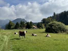 Chez Padon, prendre à gauche le sentier en cailloux qui monte à travers bois en direction de Chez le Vicaire que l'on rejoint en 15 minutes. Ici le sentier traverse bois et alpages.