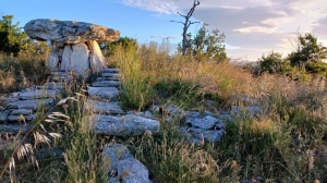 Lorsqu’on parle de dolmens ou de menhirs, on cite le plus souvent les monuments de Bretagne ou le site emblématique de Stonehenge, en Angleterre. Mais on ignore souvent qu'on recense près de 3500 dolmens sur les Grands-Causses, les plateaux calcaires situés au sud du Massif-Central.Ces monuments ont été construits à la fin du Néolithique, vers 3000 av. J-C. Aujourd'hui dissimulés dans la garrigue, ils ont été « visités » de tout temps par les bergers à la recherche de « pierres magiques » (haches polies) censées protéger leur troupeau. Les archéologues, plus méticuleux, y découvrent des ossements humains accompagnés d'offrandes, décortiquent l'architecture pour mieux la comprendre et tentent, à la lumière de ces vestiges, de reconstituer l'histoire des premières sociétés agropastorales.Un site à visiter, une architecture étonnanteLe dolmen de la Prunarède (Saint-Maurice-Navacelles) est situé sur le Causse du Larzac méridional, proche des falaises qui dominent de plus de trois cents mètres, les Gorges de la Vis. C’est un des monuments mégalithiques les plus emblématiques de la région, notamment en raison de la conservation exceptionnelle de sa dalle de couverture. Des fouilles archéologiques récentes (2010) ont permis d'explorer l’organisation architecturale du monument : la chambre, mais aussi le couloir et le tumulus, démarche inédite sur ce territoire. L'ensemble a ensuite été restauré en 2014 pour permettre l'accès libre au public. Les résultats de ces recherches sont résumés sur un grand panneau interprétatif placé à proximité du dolmen.