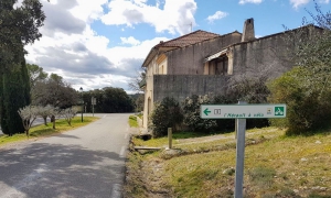 En sortant du bourg, prenez sur la droite la D127 puis une petite route sur la gauche pour rejoindre la D113. Si vous êtes en VTT, une alternative vous permet au niveau du Château de Cambous de prendre un chemin qui rejoint le village préhistorique du même nom, considéré comme le plus vieux village en pierre de France : cette section de 2 km est très agréable sur du chemin pierreux et un peu cassant. Sinon continuez sur une ligne droite assez fréquentée jusqu’au rond-point de la D896. Après le rond-point, la voirie est plus calme et très agréable. Le Pic Saint-Loup apparaît en fond, la vue est magnifique ; il vous servira de guide durant une bonne partie de l’itinéraire. Vous parcourez environ 3 km en pente douce pour rejoindre Cazevieille.