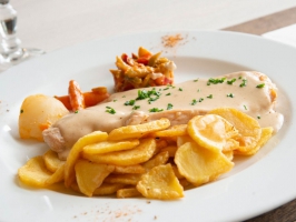 Nos menus au tableau changent tous les jours.Le menu du jour à 18.50 € est servi du lundi au vendredi midiUne grande salle de 60 places et une de 20 places.Possibilité de manger en terrasse l'été.Ouvert midi et soir du lundi au vendredi Possibilité d'ouvrir le week end pour des groupes