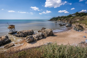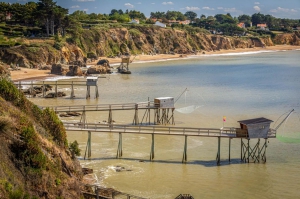 La plage de la Boutinardière située entre Pornic et La Bernerie-en-Retz est une grande crique de sable où se dressent d'étranges et gigantesques rochers au milieu d'innombrables pêcheries.