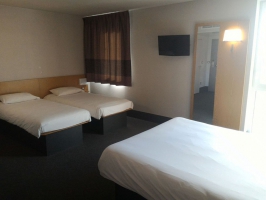 Notre hôtel B&B de La Roche-sur-Yon est bien pensé pour vous tous ! Il est situé à 800m du Vendéspace , à 30 min du Puy du Fou et 25 min des Sables d'Olonne . A partir de seulement 55 € la nuit, nous nous engageons à vous offrir : Une jolie chambre climatisée, insonorisée, avec une literie de qualité Bultex. Un espace bureau et une salle de bains parfaitement équipée. Les chaînes de la TNT (plus un bouquet Numéricable avec les chaînes RMC Sport) et l'accès Wi-fi haut débit gratuit et illimité. Quant au petit-déjeuner, chez B&B c'est une vraie spécialité , pour seulement 7.95€ par personne et 3 € pour les moins de 10 ans, vous vous régalerez d'un bon breakfast à volonté ! L’accueil CB 24hl24h et un parking sécurisé. Notre hôtel B&B propose aussi des chambres pour quatre personnes et notre distributeur de snacks-confiseries et boissons peut satisfaire les petits creux même la nuit !Envie d'en savoir plus et de visiter notre hôtel ?Contactez-nous au 08 92 70 18 85