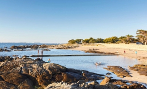 Petite plage de sable fin, à l'extrémité de la Pointe du Croisic.La qualité sanitaire de l'eau de baignade est classée excellente et stable depuis plusieurs années.