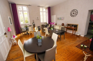 Située à proximité du Puy du Fou et des principaux sites touristiques de la Vendée, vous séjournez dans l'ancienne école des filles de Mesnard la Barotière. Cette demeure de charme construite fin 19ème, vous propose 4 chambres d’hôtes. L'environnement est propice au calme et à la détente. *Vous apprécierez le jardin et sa piscine, la bibliothèque située dans l'ancienne chapelle des sœurs, le préau où sont mis à disposition de nombreux jeux (ping pong, baby-foot, molky, jeux en bois…). Si le cœur vous en dit, à pieds ou à vélo, vous emprunterez les nombreux chemins de randonnée, au détour desquels vous découvrirez un patrimoine historique remarquable.Sur la commune, vous profiterez également des nombreuses activités proposées sur la base de loisirs du lac de la Tricherie (pêche, accrobranche, canoë, pédalo, tir à l’arc, mini golf…)Après votre visite au Puy du fou, prolongez l'aventure et découvrez les joyaux du patrimoine Vendéen. Vos hôtes vous proposent des circuits découvertes variés.''La classe d'histoire'', est une chambre familiale pour 1 à 5 personnes.Située à l' étage, elle dispose d'un espace nuit de 30 m², une SDB avec douche à l'italienne et 1 ensemble 2 vasques, ainsi que des toilettes privatives séparées.Orientée à l'ouest de la maison, elle offre une vue sur le jardin et sa piscine, sur le préau et la cour d'école.A votre arrivée, la chambre est prête, et le linge de toilette est fourni. Le petit déjeuner est servi chaque matin dans la salle à manger entre 8h et 10h.Le petit déjeuner est compris dans le prix de votre chambre.(parking gratuit devant la maison, connexion wifi, restaurants et commerces à proximité)Accès par l'autoroute A83 Bordeaux /Nantes sortie les Essarts ou par l'autoroute A87 Paris / les Sables d'Olonne sortie les Herbiers