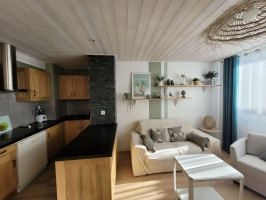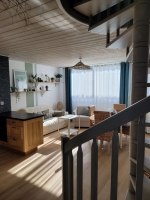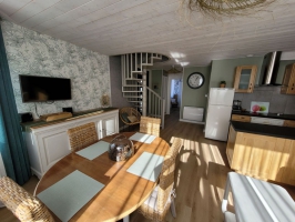 Appartement aménagé en 2016 dans un ancien atelier de menuiserie, situé au cœur de la ville. Plage, port, commerces et marché accessibles à pied. RDC : séjour/salon/cuisine, salle d'eau, WC, 1 chambre (1 lit 160). Etage (accès par un escalier en colimaçon) : 1 chambre (2 lits 90), coin détente sur mezzanine (banquette BZ). Wifi. Garage. 2 autres gîtes sur place (N° H85G010307, H85G010308). Cinéma, skate park, boulodrome à 400 m.Chauffage électrique inclus et draps fournis (lits faits à l'arrivée).Options : Ménage de fin de séjour : 80€/séjour ; Location linge de toilette : 10€/pers/séjour. En supplément : Taxe de séjour.