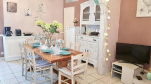 Maison ancienne rénovée, située sur une ferme en activité (céréales bio), mitoyenne à un autre gîte et au logement du propriétaire, à proximité d'un 3ème gîte. RDC: séjour/salon/cuisine. Etage : salle d'eau, wc, 2 chambres (1 lit 160) (2 lits 90). Lit bébé et chaise haute à disposition sur demande. Wifi. Terrain aménagé de 300 m² commun avec le propriétaire (balançoire), terrasse privative (salon de jardin, barbecue). Pêche dans plan d'eau privé à 500 m.Options :Ménage de fin de séjour : 60€/séjour ; Location draps 1 ou 2 pers : 20€/séjour (Lits faits à l'arrivée si option souscrite) ; Location linge de toilette : 8€/pers/séjour ; En supplément : Forfait chauffage électrique : 80€/semaine (à payer au propriétaire), Taxe de séjour.