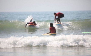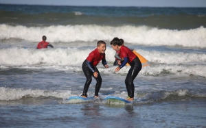 Cours individuels et collectifs ou stages de surf sur la plage de Sauveterre et en itinérance sur la Grande Plage (hors été). Surf Foil au départ de Port Olona. Activité à la portée de tous, adulte comme enfant, encadrée par un moniteur titulaire du brevet d'état d'éducateur sportif de surf/bodyboard. Le prêt de matériels adaptés, planches et combinaisons est compris dans les prestations. Tarifs Surf 2025 (matériel fourni) : 1 séance d'1h30 : 35€. Stage 3 jours d'1h30 : 100€. Stage 5 jours d'1h30 : 150€. Jardin des vagues pour les 5-9 ans : 25€/pers (1h). Tarifs Surf Foil 2025 : Un niveau minimum est requis pour pratiquer depuis la plage sur une séance. Stage groupe (4 élèves maximum) 60€/séance. Stage vague (3 séances dont une par bateau et évolution sur les vagues du bord de mer) 150€. Location de bodyboard, combinaison, surf.