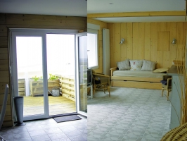 LE VARECH - Maison front de mer agréablement aménagée avec terrasse (SdJ, barbecue). Rez-de-chaussée : séjour avec cuisine US (MO, LV, combi congel, LL) et coin salon (canapé gigogne, TV), salle d'eau avec WC. Etage : salle de bain, 2 chambres (1 = 1 lit 140, 1 = 3 lits 90). Matériel bébé. Parking privé. Location draps et linge maison. Arromanches à 2km.