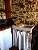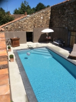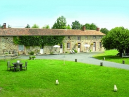 La Maison de Coton, pour 5 personnes est une jolie maison de 75m2, située en façade de la longère, sa terrasse a vue sur l’entrée des gîtes, la verdure et les deux granges. Elle fait partie de la partie la plus ancienne de la bâtisse, un ancien prieuré d’après l’histoire… Les tomettes au sol, poutres et grosses poutres apparentes préservent son côté rustique, mais elle est offre tout le confort espéré d’aujourd’hui !Elle propose une grande pièce de vie au rez- de-chaussée de 35 m2, avec coin cuisine tout équipé, réfrigérateur et partie congélateur, lave vaisselle, lave linge, bouilloire, cafetière classique, machine à café, micro ondes, gazinière inox 4 feux gaz, four à chaleur tournante etc...On y trouve également un coin salon avec canapé, une table de salon, un TV écran plat avec abonnement canal sat inclus, internet en wifi avec la Fibre très haut débit, des livres, et jeux de société, un poêle à bois en fonte pour le plaisir d’un bon feu, une grande table vendéenne ancienne pour prendre les repas et un coin bureau aux pieds de l’escalier de bois.Egalement 2 wc, un premier wc indépendant au rdc, et un second wc dans la salle de bain à l’étage.L’escalier en bois vous mène à l’étage où se trouvent deux chambres spacieuses aux tons cérusés gris pâle, avec chacune un grand lit 160, et dans l’une d’entre elle un lit bébé à barreaux en bois. Sur le palier de l’étage nous avons également installé un lit 90 qui sert de petit sofa en journée. Au total 3 lits, 2 lits 160 très spacieux pour 2 personnes et un lit 90, pour 5 personnes.La salle de bain est à l’étage, toute en bois, elle est pourvue d’un lavabo faience blanche, une baignoire avec système de douche et un wc. Les lits sont faits avant votre arrivée, les serviettes de toilette, torchons, produits d’entretien écologiques et bios sont fournis (tablettes lave vaisselle, éponges, sacs poubelles etc..), de même les petites choses basiques d’épicerie sont à votre disposition (sucre, sel, poivre, thé, café etc..) Les enfants apprécieront le plaisir de l’aire de jeux, installée dans un grand pré près des ânes, balançoires, pont suspendu, cordes, ping pong, etc… Nos animaux vivent paisiblement autour des maisons, et adorent qu’on leur rende visite, La piscine chauffée à 29 degrés est ouverte d’avril aux vacances de la Toussaint, elle est installée en patio dans l’une de nos granges, ouverte à tous durant la journée de 10h à 19h, elle est très sécure pour les enfants et vous offre un petit coin au calme très appréciable ! Au beaux jours, une petite guinguette a ouvert ses portes, la P’tite Ferraille vous offre un lieu où l’on peut bouquiner, faire des jeux, boire un verre, rencontrer des gens, faire des trouvailles à la petite Friperie, vous pourrez parfois y découvrir quelques artistes musiciens lors de petites soirées ! N’hésitez pas à nous contacter, nous serons ravis de vous donner plus d’infos si besoin !