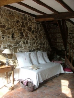 La Maison de Lin, pour 10 personnes est un jolie maison de 105m2, aux tons doux du lin. Elle propose une grande pièce de vie au rez-de-chaussée de 35 m2, pierres et poutres apparentes, tomettes anciennes cirées au sol. On y trouve une grande table pour 10 pour prendre les repas, un coin salon avec un lit en fer forgé pour un couchage d’appoint pour 1 personne, TV écran plat avec abonnement canal sat inclus, internet en wifi, un grand poêle à bois pour le plaisir d’une flambée l’hiver etc..La petite cuisine à côté de la pièce de vie est toute équipée, lave vaisselle, réfrigérateur congélateur, lave linge, machine à café nespresso, bouilloire, cafetière, micro ondes, gazinière inox feux gaz, four à chaleur tournante etc...Elle ouvre sur l’arrière de la maison avec une grande terrasse en bois, grande pergola, salons de jardin, barbecue etc... un jardin clôturé vous offre tout autour la nature et les animaux qui vivent là paisiblement.Un premier wc indépendant se trouve au rez de chaussée et un second à l’étage avec un point d’eau chaude et froide et un miroir.La salle de bain au rez-de-chaussée propose une baignoire et une douche à l’italienne spacieuse, ainsi qu’ une double vasque, un joli lave main d’écolier ancien. Les carreaux de ciment au sol et les murs refaits à la chaux lui donnent un joli cachet !A l’étage se trouvent 2 chambres spacieuses, aux tons doux du bois cérusé blanc, avec dans la première chambre un grand lit 160, un lit 90, et un lit bébé à barreaux en bois blanc, ainsi qu’un petit coin lecture.Un grand couloir vous mène à la seconde chambre de 35 m2, où se trouvent 2 lits 90 d’un côté de la chambre et de l’autre côté 2 lits 160, la chambre est très haute en toiture, très grande et très aérée, ses murs à la chaux et le sol jonc de mer la rendent très cossue. On peut séparer les couchages avec des paravents si besoin mis à disposition. Au total donc 7 lits: 3 lits 160 et 4 lits 90 et un lit bébé, 10 personnes   Les lits sont faits avant votre arrivée, les serviettes de toilette, torchons, produits d’entretien écologiques et bios sont fournis (tablettes lave vaisselle, éponges, sacs poubelles etc..), de même les petites choses basiques d’épicerie sont à votre disposition (sucre, sel, poivre, thé, café etc..) Les enfants apprécieront le plaisir de l’aire de jeux, installée dans un grand pré près des ânes, balançoires, pont suspendu, cordes, ping pong, etc… Nos animaux vivent paisiblement autour des maisons, et adorent qu’on leur rende visite,  La piscine chauffée à 29 degrés est ouverte d’avril aux vacances de la Toussaint, elle est installée en patio dans l’une de nos granges, ouverte à tous durant la journée de 10h à 19h, elle est très sécure pour les enfants et vous offre un petit coin au calme très appréciable !  Au beaux jours, une petite guinguette a ouvert ses portes, la P’tite Ferraille vous offre un lieu où l’on peut bouquiner, faire des jeux, boire un verre, rencontrer des gens, faire des trouvailles à la petite Friperie, vous pourrez parfois y découvrir quelques artistes musiciens lors de petites soirées !  N’hésitez pas à nous contacter, nous serons ravis de vous donner plus d’infos si besoin !