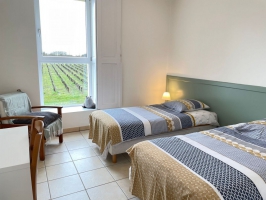 Bâtisse du XVe s. aménagée en 2 gîtes (entrée commune), située au cœur des vignes à proximité d'une Auberge de campagne. Jardinet privatif avec terrasse et jardin commun de 300 m². 2 vélos adultes et 2 VTC (communs aux 2 gîtes) à disposition. RDC: séjour avec cuisine aménagée ouverte, WC indépendant. Etage: salon en mezzanine avec poêle à granulés, 3 chambres (1: 2 lits 90x190, 2: 1 lit 160x200, 3: 2 lits 90x190), salle d'eau, WC indépendant. Equipements inclus : congélateur, machine à café Nespresso, équipement complet bébé, chaîne hifi, sèche-cheveux, fer et table à repasser, accès Wifi. Compris : draps (lits faits à l'arrivée) et linge de toilette. Non compris : chauffage électrique, électricité, granulés, forfait ménage obligatoire (90€) et taxe de séjour. Animaux : caution 100€.Possibilité location trottinettes électriques (voir conditions auprès du propriétaire). Label Eco-défis (démarche environnementale).Borne de recharge pour les véhicules électriques et hybrides : forfait 5€/jour.COMPLET HELLFEST 2026
