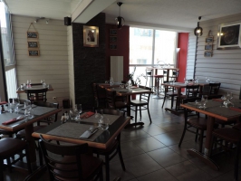 Terrasse devant le restaurant de 25 places assises abritée sous les Halles.