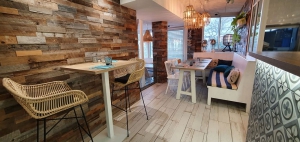 La Crêperie L’Estacade est située sur le front de mer de Saint Jean de Monts.La salle vitrée du restaurant vous fera profiter de la douceur du soleil, de la beauté de l’horizon et vous pourrez admirer de romantiques couchers de soleil.Créée en 1975, la Crêperie l’Estacade prend son nom de l’Estacade ce ponton de promenade qui est la fierté Montoise depuis 1963.Fiers que leur établissement porte le nom du site très prisé, Tony en salle et Géraldine en cuisine, vous accueillent dans leur crêperie depuis novembre 2023 !Dans une ambiance mer déco simple mais douce, vous profiterez d’une salle lumineuse et accueillante qui s'est refaite une beauté en février 2019 pour votre confort.La terrasse s’est transformée en pergola dont le toit et les portes s’ouvrent et se ferment au gré du temps et des caprices du climat marin.Avec un accueil chaleureux, ils vous recevront pour que votre déjeuner, votre goûter ou votre dîner, qu’il soit en famille ou entre amis, romantique ou festif se transforme en un moment de plaisir.Leur équipe, disponible, vous recevra et saura vous conseiller sur les produits qui vous sont proposés.Leur métier de crêpier vous emmènera à la découverte d’originales galettes aux goûts subtils et aux associations de saveurs pour ravir vos papilles.Vous pourrez également découvrir sur la carte d’autre produits pour le plaisir et les envies de tous, des salades, poissons et viandes ou moules en saison (ex : salade Estacade, une salade avec brochettes de Noix de Saint Jacques fraîches juste snackées accompagnée de saumon fumé ou le poisson du moment avec son beurre blanc maison et ses légumes de saison).Le restaurant est Lauréat préférence commerce 2021.