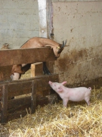 La Ferme des 1001 Cornes, c'est aujourd'hui 130 chèvres - de race Alpine et Saanen - , une quinzaine de vaches Salers et dix cochons.C'est aussi un couple de paysans, Camille et Jean-Hugues, installés à Guenrouët depuis 2009."Notre fromagerie a vu le jour en 2011. Nous exploitons 54 hectares de prairies et de céréales autoconsommées, en Agriculture Biologique."Retrouvez les produits laitiers de lait de chèvre et la viande de porc (le boeuf est vendu par un intermédiaire) de la Ferme des 1001 Cornes, sur l'exploitation, sur commande préalable pour la viande.