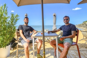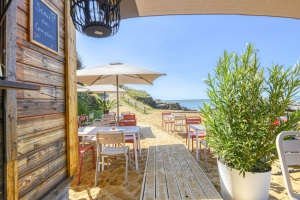Idéalement située sur la plage des Sablons à Pornic, la Cabane vous accueille d'avril à septembre dans un cadre idyllique.Ils vous proposent un large choix de plats composés de produits frais le midi (salades, wraps, bruchettas, carpaccios, ...) ainsi qu’une carte de tapas le soir (huîtres, préfou maison, planches charcuterie et fromage,..).L'équipe de la Cabane vous conseille :La salade Bumi : melon, jambon serrano, feta, tomate, concombre, oignon rouge, salade et menthe fraiche Le wrap Marcelin : tenders de poulet, crème au paprika fumé, coriandre, oignon rouge, tomate, salade et pickles de chou rouge Ce qu'on aime à la Cabane :les transats les pieds dans le sable les produits locaux (bières de Pornic, huîtres de La Bernerie) les animationsles jeux de sable à disposition pour les enfants Les infos pratiques :pas de réservations,accès handicapé restreint,WC public à proximité,places de parking dans le bourg de Sainte-Marie-sur-Mer.La Cabane des Sablons fait partie des nombreux restaurants de Pornic présentés par l'Office de Tourisme Destination Pornic.