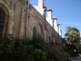 Une église à travers les siècles Une première église médiévale fut édifiée, semble-t-il, dans la ville haute de Pornic dès le Xème siècle, en 978 par le prince breton Glévihen.Une seconde fut bâtie à la fin XIVème siècle et mise sous l'invocation de saint Gilles.Elle fut placée sous l’autorité religieuse de l’abbaye de Sainte-Marie-de-Pornic jusqu’au milieu du XVIème siècle. C'est précisément en 1554, que l'église de Pornic devint paroissiale.Celle-ci fut abattue au cours de la deuxième moitié du XIXème siècle pour laisser place à son emplacement à un édifice plus important.L'église Saint-Gilles actuelle date d'une époque où beaucoup d'églises dans notre région ont été reconstruites. La décision de rebâtir l'église vétuste du Moyen Âge est intervenue en 1852.Si les travaux ont débuté en 1864, elle ne fut entièrement achevée qu'en 1875 par la construction du clocher.L'église Saint-Gilles au temps médiéval, époque des TempliersLa dévotion des Templiers pour Saint-Gilles-du-Gard, un des hauts-lieux de pèlerinage de la chrétienté médiévale, expliquerait vraisemblablement ce choix de patronage car les Templiers avaient des biens à Pornic.Dans l’ancienne église auraient été retrouvés des fragments de pierres tombales ornées de la croix de cet ordre hospitalier et militaire.C’est vers le milieu du VIIème siècle, à Athènes, que naît saint Gilles (Aegidius). S’illustrant par des miracles, mais fuyant la renommée, il quitte sa patrie et s’installe en Provence, où il vit en ermite dans une forêt au sud de Nîmes, avec une biche pour tout animal de compagnie. Selon la légende, la biche, poursuivie par des chasseurs, vient se réfugier à ses pieds, tandis qu’une flèche, tirée par un roi wisigoth, manque l’animal et blesse le saint à la main. Pour se faire pardonner, le roi consent à construire une abbaye dont Gilles devient le premier abbé, donnant naissance à la ville de Saint-Gilles-du-Gard.Saint-Gilles, célébré le 1er septembre, jour de sa mort, est invoqué comme protecteur des gens de mer, des cultivateurs et des bergers.On le représente souvent avec une biche sur la tête de laquelle repose sa main blessée.A voir les deux représentations du saint patron: l'une à l'extérieur de l'église, sculptée au-dessus du porche d'entrée, l'autre à l'intérieur sur un vitrail du choeur.Eglise Saint-Gilles : de style roman. La place de l'église est dominée par le clocher en pierre : tour massive couronnée par une flèche recouverte de pierres blanches.L'ensemble du bâtiment est entouré de culés d'arcs-boutants s'apparentant au style gothique (seuls ces détails architecturaux rappellent le gothique).Le parvis est constitué de l'escalier menant au porche d'entrée. Au-dessus de ce dernier, on aperçoit le tympan sculpté, représentant le personnage de saint Gilles.Il est étonnant que sur ce tympan la biche soit transpercée par une flèche. En effet, d'après la légende, c'est saint Gilles qui a reçu la flèche à la place de l'animal en la protégeant.Intérieur de l'église Saint-GillesPlusieurs curiosités ont un intérêt :A gauche, au fond de l'église, le baptistère. Présents dans l'ancienne église, les fonts baptismaux datent au moins de 1837. Ils sont en marbre rose avec un remarquable couvercle en chêne sculpté.A proximité, un tableau de l'Assomption de la Vierge peint en 1868 par Joséphine Houssay, nantaise, pour le compte de l’Etat, en réponse à une demande de la paroisse de Pornic de disposer d’une œuvre pour sa nouvelle église en construction. C'est un copie d'un célèbre tableau de Pierre-Paul Prud'hon de 1819, conservé au Louvre.L’œuvre, longtemps remisée, a été restaurée et remise en place dans l’église en 2013. La statue de la Vierge à l'Enfant, située à droite du chœur. Cette sculpture, dite « bourguignonne », date de la première moitié du XVème siècle. Elle est attribuée à l'atelier du sculpteur Claus de Werve (1380-1439). Classée, elle était présente dans l'ancienne église médiévale.Un Christ, installé dans le chœur, est une copie exacte d'un Christ polychrome du XVème siècle, œuvre de la communauté des sœurs de Bethléem.Le maître-autel est en pierre de Chauvigny, comme les deux anges des autels latéraux. Les sculptures représentent, d'une part, les quatre évangélistes symbolisés par l'homme ailé, le taureau, le lion et l'aigle. De l'autre côté, ce sont deux scènes de l'Ancien Testament encadrant la mise en croix du Christ.Enfin, à remarquer sur le tailloir des deux colonnes centrales de la tribune, deux personnages avec des instruments de musique, représentant d'un côté le roi David et de l'autre sainte Cécile.Les vitraux du chœur sont à rattacher à l'histoire religieuse de Pornic :à gauche, le vitrail représente saint Gilles avec une biche, et saint Clément, troisième pape, patron des bateliersau centre, il représente l'ancienne chapelle Notre-Dame de Recouvranceet à droite saint André, apôtre de Jésus et sainte Anne, en souvenir de deux anciennes chapelles de Pornic.L’église actuelle est achevée en 1871, mais il faudra attendre 1875 pour que le son des trois nouvelles cloches se fasse entendre. Pour consulter les horaires des messes de la paroisse Notre-Dame de la Côte de Jade cliquez ici. Les petits plus :L'histoire de l'église est abordée avec un guide dans le cadre de l'une des visites guidées à pied proposées par l'Office de Tourisme Intercommunal intitulée "Rues et chemins".La découverte libre de cet édifice religieux peut se faire en parcourant le circuit patrimonial le coeur de ville et son paysage médévial.