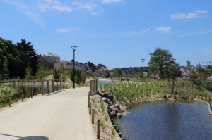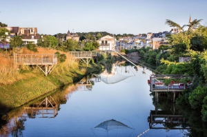 Un poumon vert au coeur de PornicLa ria est ce bras de mer qui entre dans les terres, au niveau du vieux de port de Pornic.En parallèle du canal de Haute Perche, au-delà de l’écluse qui régule canal et ria, le paysage s’ouvre sur un jardin extraordinaire : flânez entre les bassins d’eau en cascades, admirez les camélias, les lauriers roses selon la saison, palmiers et roseaux, cherchez les carpes Koï et écoutez les canards discuter entre eux !Le promeneur est convié à une découverte orchestrée en 3 séquences en allant d’ouest en est, qui propose une balade dans un parc de 13 hectares.la "promenade le long des quais", profitant de la vue paisible sur la ria en descendant les escaliers, en longeant le chemin ou sur les 6 pontons de bois au-dessus du canal de Haute-Perche.le "relais botanique et ses ilôts" qui propose des rizières bordées de camélias et rappellent aux promeneurs les fameux paysages chinois,et "au fil de l’eau" lorsque l'on s'enfonce au fond de la ria, au-delà du jardin. Le petit + :En saison, la ville organise des exposition de photos grand format outdoor. L'aménagement permettant de passez en-dessous de la voie routière, permet de profiter d'une continuité de cheminement et de récupérer le circuit du Canal de Haute-Perche.Pour poursuivre la découverte le circuit "Paysage rural au fil de l'eau" permet de sillonner le long du Canal de Haute-Perche du vieux port au Clion-sur-Mer.
