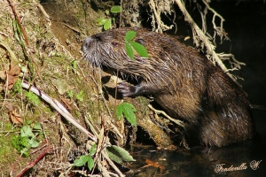 C’est un mammifère originaire d'Amérique du Sud qui pèse jusqu’à 7 kg et mesure entre 40 et 60 cm. Il a été introduit dans le monde entier pour l'exploitation de sa fourrure brune. Son pelage épais et imperméable lui permet de nager longtemps. Ses pattes arrière sont palmées. Ses yeux et ses narines sont placés en hauteur pour lui permettre de voir et de respirer dans l'eau. Ce gros rat est présent sur tout le continent, mais préfère les endroits au climat doux. Le ragondin vit dans l’eau douce, (fleuves, rivières, marais, étangs, canaux, fossés humides...). Il vit dans un terrier, qu'il creuse, de 6 ou 7m le long des berges. Cet animal sort essentiellement la nuit, seul ou en famille. Son régime est herbivore, composé d'herbes, de plantes aquatiques, de racines, d'écorces, de céréales...