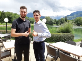 Restaurant l'Auberge des lacs, terrasse les pieds dans l'eau au bord du lac de Thyez, spécialités de poissons frais.