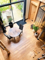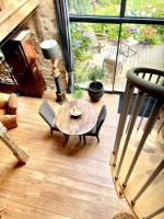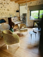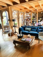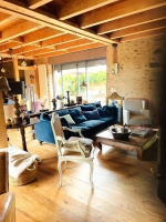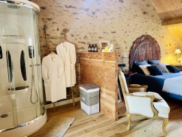C'est une ancienne grange, rénovée de bois et de lumière. Les larges ouvertures créées, laissent aux rayons du soleil la liberté de s'exprimer. Sous la verrière aux éléments d'architecture en provenance du Rajasthan, s'organise chaque espace de vie. Une maison qui donne l'âme voyageuse, comme une escale vers un autre port. Pour se retrouver à deux, mais aussi avec soi ; l'atmosphère de la demeure vous nourrissant de sérénité et d'apaisement. Au bout de l'escalier grimpant au dessus des arches, installée dans un des pignons traditionnels, la chambre (1 lit 160, 1 lit d'appoint) au style épuré, dans des tons naturels vous offre calme et repos. Équipement bébé sur demande. Spa extérieur non couvert gratuit. Jacuzzi intérieur situé au RDC, supplément de 15 €.