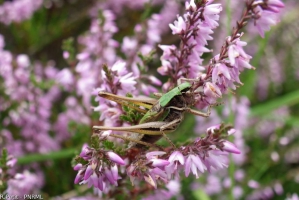 La callune (calluna vulgaris) ou fausse bruyère se distingue de la vraie bruyère notamment par ses feuilles minuscules agencées sur 4 rangs. Le nom est issu du grec calluna qui signifie balayer. Les 2 espèces se trouvent souvent ensemble.